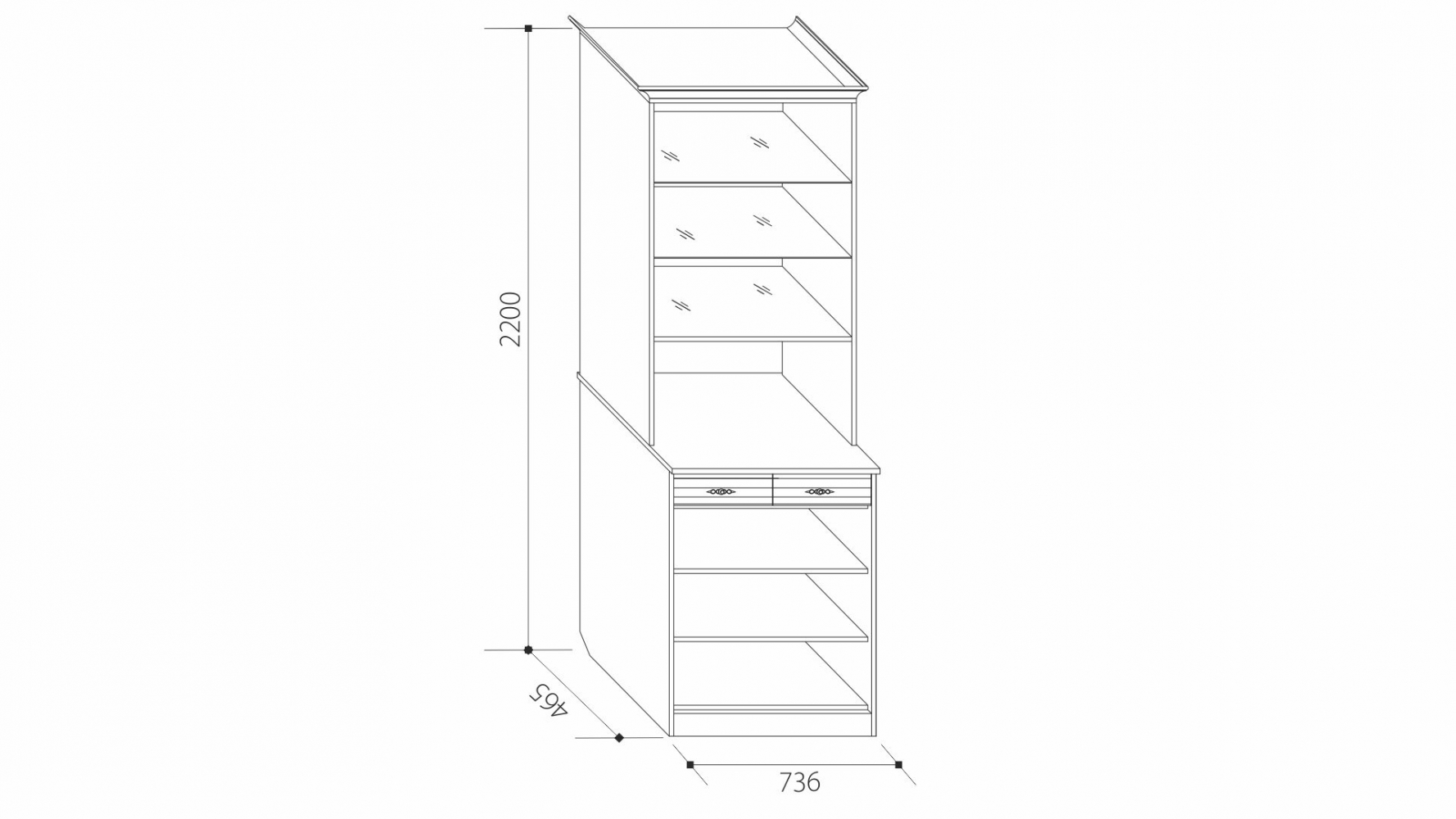 ДхВхШ: 736х2200х465 мм.